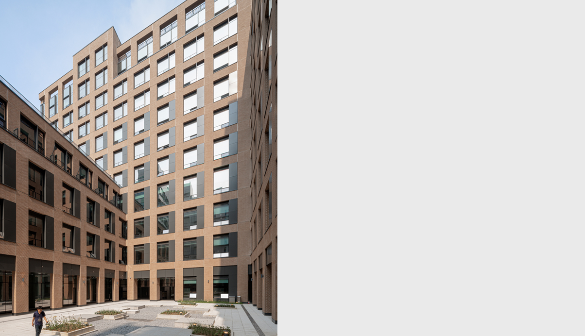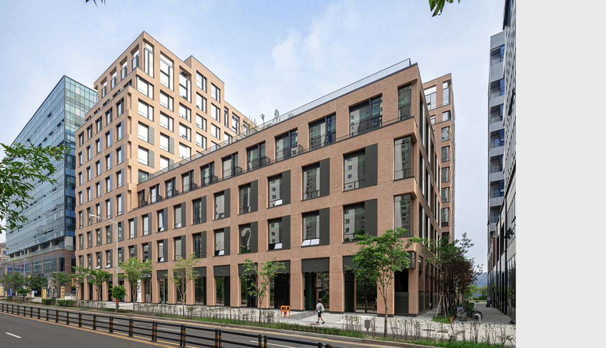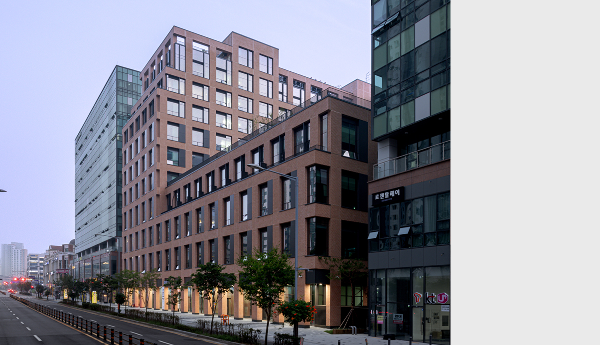 입면 디자인은 벽돌과 스틸을 조합해 인더스트리얼하면서도 젊고 트렌디한 분위기를 연출하였다. 뉴욕의 산업 건축에서 영감을 받은 벽돌 그리드 창은 채광과 조망, 프라이버시를 동시에 고려하였고, 커튼월 위주의 주변 건물들과는 차별화된 건축 아이덴티티를 형성한다. 그레이톤의 차분한 외장재는 도시경관 속에서 따뜻하고 안정된 이미지를 제공한다.