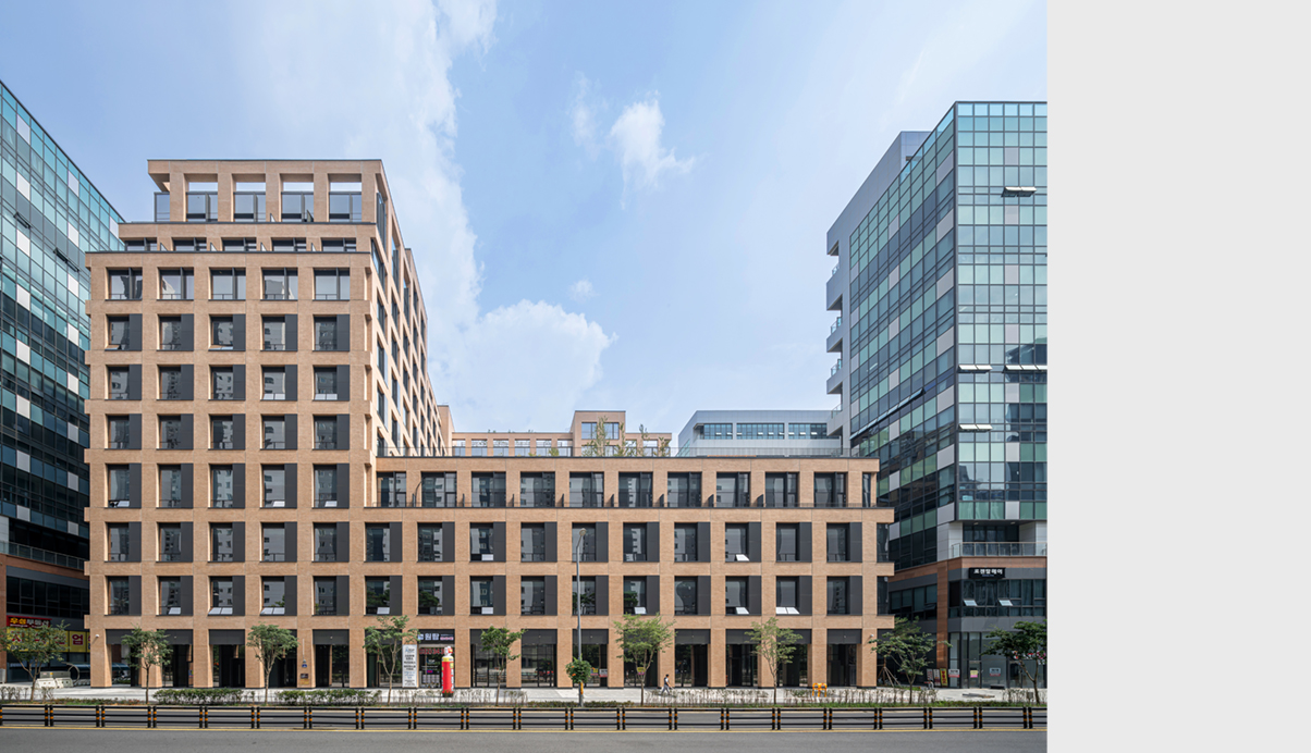 부천 옥길지구 중심부에 위치한 본 프로젝트는 고밀도의 지식산업센터가 밀집한 도시 맥락 속에서, 남북으로 열린 조망과 자연환경을 적극적으로 수용하여 도시경관적 차별화를 시도한 건축이다. 기존 지식산업센터가 보여주는 단조롭고 과밀한 커튼월 중심의 풍경에서 벗어나, 열린 배치를 통해 쾌적한 일상과 균질한 일조 환경, 다양한 외부 공간을 제공하고자 하였다.